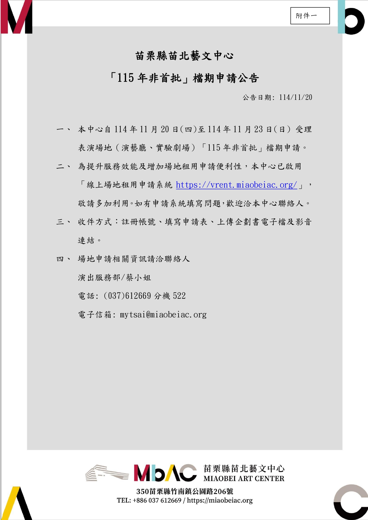 MBAC苗北藝友申請